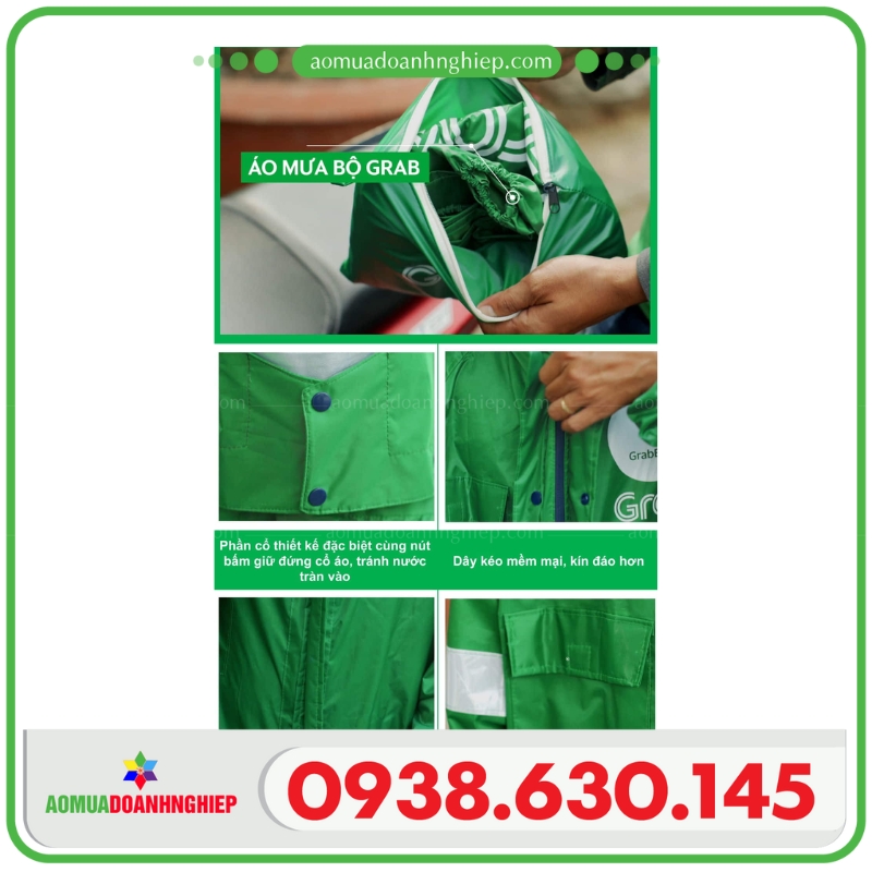 Các mẫu áo mưa bộ Grab thiết kế tiện lợi, chống thấm tuyệt đối