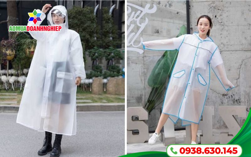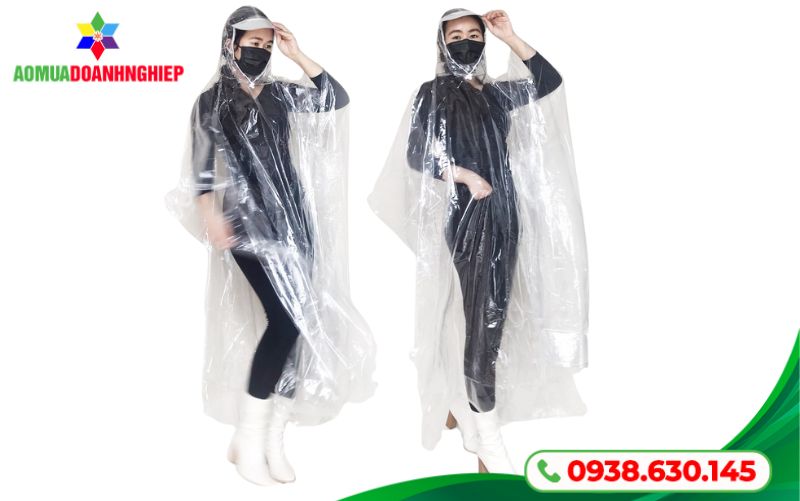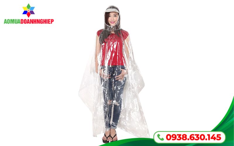 Nhựa PVC trong suốt thường được sử dụng rộng rãi trong sản xuất áo mưa. Chất liệu này có bề mặt láng bóng, dễ tạo hình và thường được lựa chọn để in ấn logo, hình ảnh phục vụ cho áo mưa quảng bá thương hiệu.